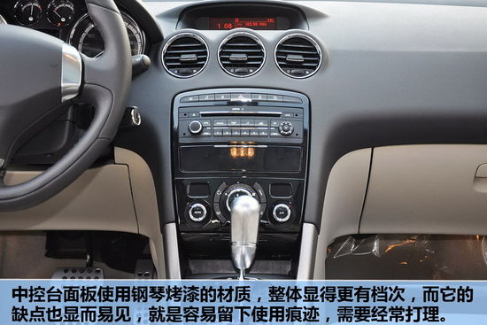 中控臺(tái)面板使用鋼琴烤漆的材質(zhì),整體顯得更有檔次,而它的缺點(diǎn)也顯而易見(jiàn),就是容易留下使用痕跡,需要經(jīng)常打理。