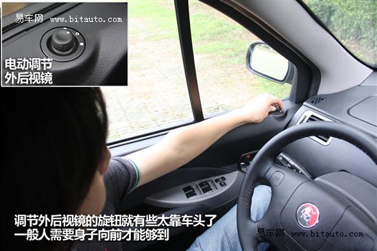 整個(gè)中控臺(tái)采用了類似MPV車型的設(shè)計(jì)理念,檔位設(shè)計(jì)在中控臺(tái)下面,配合座椅的扶手,操作起來非常方便。四輻式方向盤采用真皮材質(zhì),手感還算不錯(cuò),讓編輯喜歡的是喇叭的位置,相比一般方向盤指向性更準(zhǔn)確,觸“指”可及。相比前面所說的,調(diào)節(jié)外后視鏡的旋鈕就有些太靠車頭了,一般人需要身子向前才能夠到。