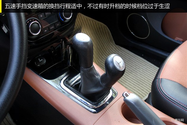我們?cè)囻{的這款景逸X5采用的是5檔手動(dòng)變速箱,換擋的行程適中,配以行程較短的離合器,可以完成迅速換擋的過(guò)程,不過(guò)由于1檔沒(méi)有同步器,所以有時(shí)入位需要多踩幾下離合器才能找到嚙合點(diǎn),這款手動(dòng)變速箱偶爾在升檔時(shí)也會(huì)出現(xiàn)一些生澀,或許是新車(chē)的原因所致。