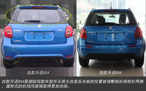 改款天語SX4尾部較現(xiàn)款車型并無很大變化,只是反光板的位置被調(diào)整到后保險(xiǎn)杠的兩側(cè),整體溜背式的后擋風(fēng)玻璃則顯得該車非常具有運(yùn)動感。