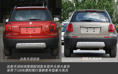 改款天語銳騎前臉較現(xiàn)款車型并沒有很大變化,整體的傾斜度較現(xiàn)款車型更加趨于平緩,而尾部采用了LED光源的尾燈則成為了該車*大的亮點(diǎn)。