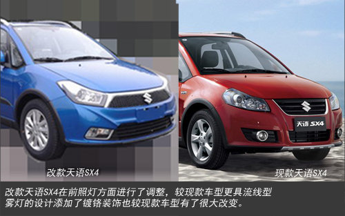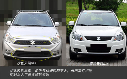 相比現(xiàn)款車型,改款天語SX4在前臉設(shè)計(jì)上的改變非常突出,采用了全新的進(jìn)氣格柵設(shè)計(jì),并且前照燈的設(shè)計(jì)也有所變化非常具有運(yùn)動感。前格柵面積更大,并且與霧燈連成一體,并融入了較多的鍍鉻裝飾件。