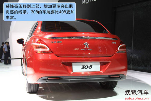 在兩側(cè)的進(jìn)氣口上,國(guó)產(chǎn)版顯然要更保守一些,不僅面積變小,而且設(shè)計(jì)上是柳葉形,并非海外版的菱形。海外版兩側(cè)進(jìn)氣口內(nèi)鑲嵌LED燈,國(guó)產(chǎn)版似乎要被鍍鉻裝飾條取代。尾部的尾燈設(shè)計(jì)比較具有亮點(diǎn),使得整個(gè)308的尾部十分協(xié)調(diào),相比于307三廂或者是408而言,308的車(chē)尾都要流暢得多。