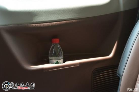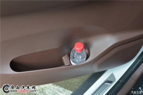 前后排門板均只具備一瓶水的儲(chǔ)物能力,剩余空間只能放其它細(xì)小雜物。中央扶手下面有一個(gè)杯座,而扶手箱為了照顧后排出風(fēng)口剩余空間也很有限。