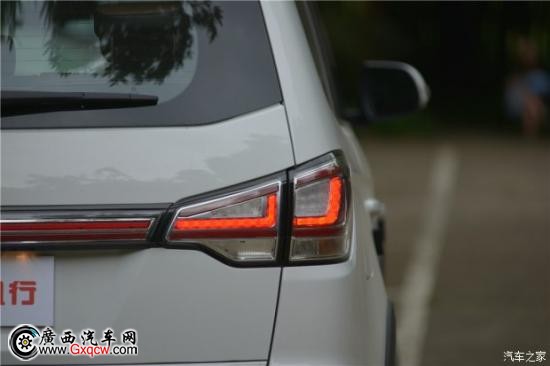 車尾設(shè)計(jì)比起傳統(tǒng)的都市SUV還是有點(diǎn)特別的,為了兼顧第三排的空間和后備箱的實(shí)用性,尾部造型比較方正,切削感明顯。但是風(fēng)行也并沒有放任不管,而是用一根與尾燈同色的貫穿式反光條把兩側(cè)尾燈統(tǒng)一聯(lián)系在一起。這樣整個(gè)尾部的設(shè)計(jì)感加強(qiáng)了,層次更鮮明,也不會(huì)顯得很“楞”。