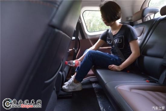 試乘人員身高:164mm,頭部空間和膝部空間表現(xiàn)不俗,頭部空間有550ml礦泉水瓶高度的空余,膝部也有超過兩拳的距離。