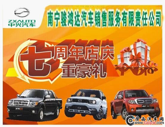 2014年9月,中興汽車南寧駿鴻達(dá)安吉專賣店將迎來(lái)它的7周歲生日(公司成立11周年),恰逢北部灣第十三屆汽車展(9月4-7日)。喜迎店慶、車展雙響炮,南寧駿鴻達(dá)店面、車展優(yōu)惠同步、回饋同步!