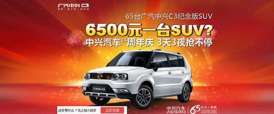 廣汽中興C3六十五周年廠慶紀(jì)念版SUV20年使用權(quán),市場(chǎng)價(jià)63800元共計(jì)65臺(tái)