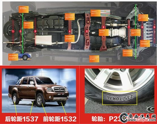 4、超強(qiáng)的操控性及穩(wěn)定性。威虎TUV采用專業(yè)的三菱SUV越野底盤技術(shù),獨(dú)有的九根橫梁保證了底盤的安全性及穩(wěn)定性。1532/1537mm的加寬輪距也讓TUV在高速轉(zhuǎn)彎時(shí)擁有更好的側(cè)傾穩(wěn)定性,配上P235/70R16的大輪胎,抓地力更好,所以威虎TUV也被冠以“可以漂移的皮卡”稱號。