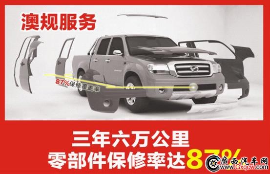 7、澳規(guī)服務(wù)標(biāo)準(zhǔn)。威虎TUV全車保修3年6萬公里,并**推出BTB保修政策(前保險(xiǎn)杠到后保險(xiǎn)杠),全車零部件保修覆蓋率達(dá)87%,是皮卡中保修里程最長和保修項(xiàng)目最多的車型,**國內(nèi)、同步澳大利亞服務(wù)標(biāo)準(zhǔn)。汽車整車保修不單看保修時(shí)長及里程數(shù),還要看保修的零部件覆蓋率,兩者結(jié)合才能看出誰的服務(wù)好!