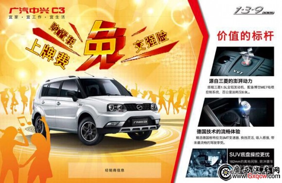 廣汽中興C3,是廣汽與中興合資公司生產(chǎn)的首款都市多功能SUV。推薦的五大理由: