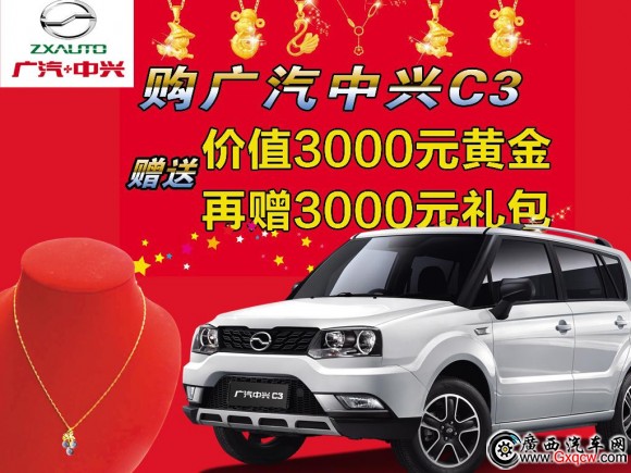 新年新氣象,元旦購廣汽中興C3送3000元黃金,再送3000元豪禮!心動的小伙伴趕緊行動吧,抓住年前*后一波購車優(yōu)惠的小尾巴,把“小三”和黃金領(lǐng)回家!