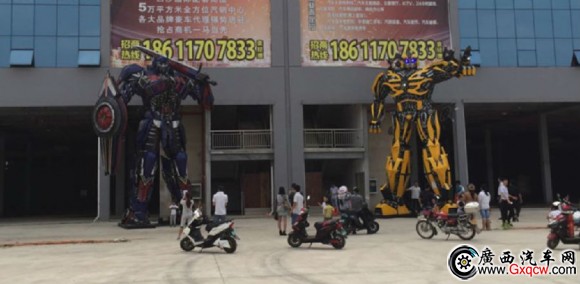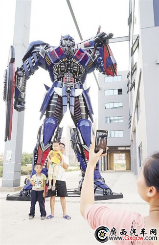 擎天柱、大黃蜂這兩個大家伙,身高8米,換做樓層高度計(jì)算,可有3層樓那么高,分別重達(dá)6000公斤,即6噸,造價一共要60萬元人民幣呢!