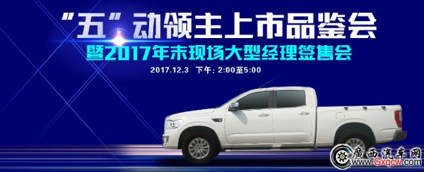 “五”動(dòng)領(lǐng)主上市品鑒會(huì)暨2017年末現(xiàn)場(chǎng)大型經(jīng)理簽售會(huì)2017年12月3日下午2:00在南寧駿鴻達(dá)中興皮卡4S店舉行。