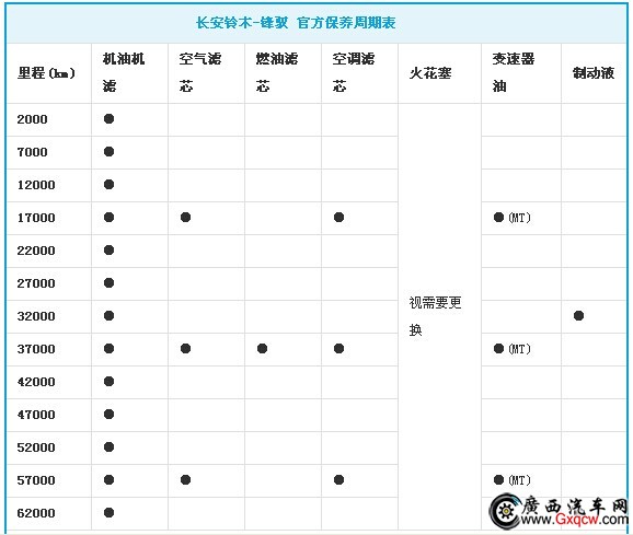 鋒馭的整車(chē)質(zhì)保為三年或10萬(wàn)公里,廠家提供1次免費(fèi)保養(yǎng),保養(yǎng)間隔為5000公里。其中,空氣濾芯、空調(diào)濾芯和手動(dòng)變速器油的更換周期為2萬(wàn)公里,燃油濾芯的更換周期為4萬(wàn)公里。官方并沒(méi)有給出火花塞的更換周期,視需要更換。而電動(dòng)助力轉(zhuǎn)向系統(tǒng)、CVT變速器和差速器是免維護(hù)的。