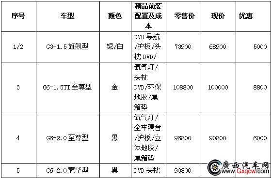 現(xiàn)車比亞迪清倉大處理活動,五款比亞迪G3、G6車型清倉大賣: