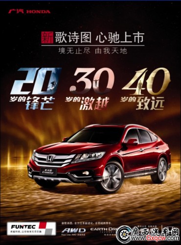 4月18日,新歌詩圖,Crosstour,即將上市,四驅全力越動狂野,全景天窗坐擁天下,廣汽百色城東特約店現(xiàn)正全面接受預定!更有三重大禮等你拿。