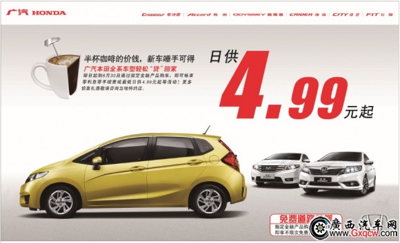 5月18日--25日,廣本全系尊享0利率金融方案,指定金融產(chǎn)品購(gòu)車(chē)還享最低日供4.99元!