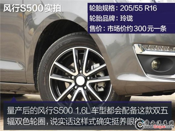 此次我們實拍的車型為風(fēng)行S500 依然是試裝車,該車正式量產(chǎn)后還會在外觀和內(nèi)飾細節(jié)部分進行改動,另外在動力方面,該車搭載的是1.6L+CVT的動力總成。