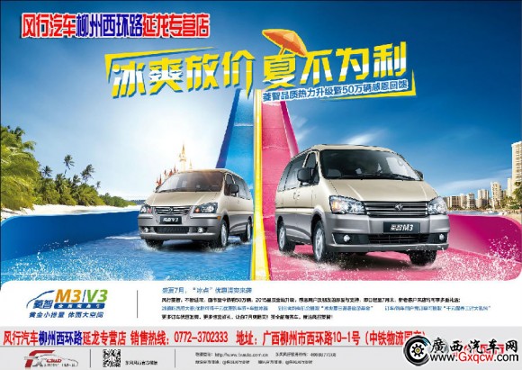當夏日酷熱來襲,炎炎暑氣蒸騰,特別渴望有冰與水的清涼。近日,在菱智50萬輛順利達成、菱智品質(zhì)提升I期工程產(chǎn)品全部到位之際,為答謝新老客戶的長期支持與厚愛,東風風行柳州西環(huán)路延龍專營店將展開以“盛夏鉅惠夏不為利”為主題的“冰爽放價 夏不為利——菱智50萬輛感恩回饋”活動。屆時,柳州西環(huán)路延龍專營店將憑借豐富多彩、形式多樣的活動內(nèi)容,以及避暑大獎,在炎炎夏日為消費者送去一絲冰爽。