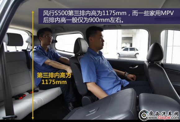而在“MM”(人能夠享受車內空間的*大化,車必須的機器占有空間最。┰O計理念下,其“層高”更是遙遙**。測量數(shù)據(jù)顯示,風行S500第三排內高為1175mm,而一些家用MPV后排內高一般僅為900mm左右。