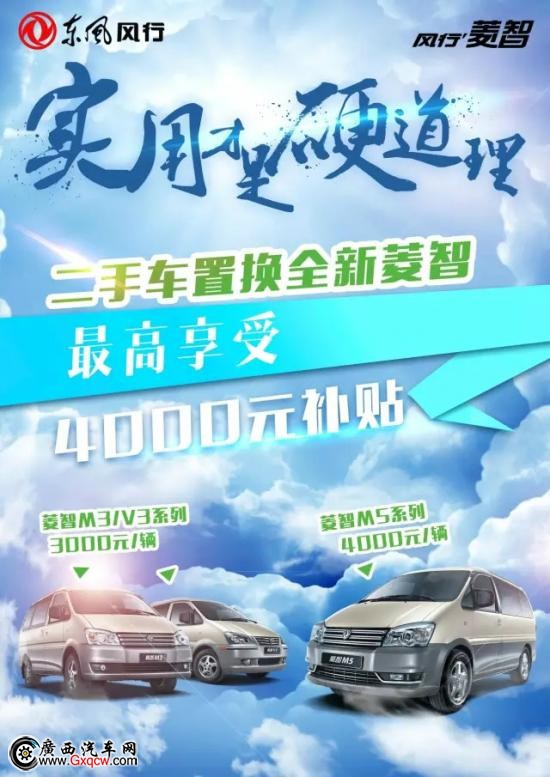 二手車置換金額補(bǔ)貼:菱智M5系列 4000元/輛;菱智M3/V3系列3000元/輛;