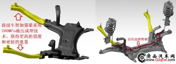 全新景逸X5在前懸掛方面,前副車架加強(qiáng)梁采用的是280MPa液壓內(nèi)高壓成型技術(shù),使其獲得更高的強(qiáng)度和更輕的重量,這樣的結(jié)構(gòu),對(duì)于激烈駕駛過程、或在崎嶇路面行駛情況,能夠起到有效的支撐作用,在發(fā)生碰撞時(shí)吸收碰撞能量。再加上高性能彈簧鋼的應(yīng)用,有著不錯(cuò)的防側(cè)傾性能及減震效果,在車輛發(fā)生較大程度的側(cè)傾趨勢(shì)時(shí),可及時(shí)對(duì)減振器進(jìn)行橫向控制,目的是為了提升車輛前輪的操控性和穩(wěn)定性。
