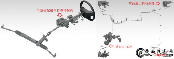 另外,對(duì)于大家同樣很關(guān)心的轉(zhuǎn)向系統(tǒng)和制動(dòng)系統(tǒng),全新景逸X5可謂“名牌傍身”。全系標(biāo)配耐世特EPS電子助力轉(zhuǎn)向系統(tǒng),全面優(yōu)化后的轉(zhuǎn)向力矩更小,使得打方向拐彎、泊車、調(diào)頭時(shí)更輕松省力。值得一提的是,全新景逸X5將電子駐車升級(jí)后,全系標(biāo)配博世ESP 9.1系統(tǒng),功能更強(qiáng)大,主動(dòng)安全性能提升,科技感十足。同時(shí)配合京西重工(原德爾福)制動(dòng)系統(tǒng),使得全新景逸X5優(yōu)化后的底盤性能達(dá)到合資水平。