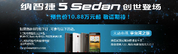 7月25日前訂購納智捷5sedan即可獲贈價值千元冷熱杯架一個(車載冷熱飲科技體驗),購尊貴版以上車型版獲贈價值4640元HTC Butterfly 智能手機(含SIM卡及免費使用2年呼叫中心平臺服務)一部!,來店有禮享臺灣之旅,歡迎大家來館參觀體驗,我們捷誠為您安排專人專業(yè)銷售顧問帶您一起體驗納智捷南寧捷誠汽車生活館與其他汽車4S店的不同科技魅力,讓您享受超快感的買車過程,贏臺灣單人游,購車再贏臺灣雙人游!