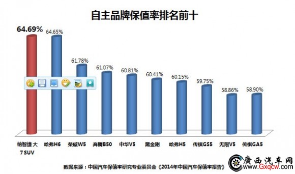 縱觀本次研究結(jié)果,自主品牌冠軍納智捷 大7 SUV在得分方面接近現(xiàn)代ix35、豐田漢蘭達,全面超越了起亞智跑、哈弗H6等,成功躋身合資品牌陣營。