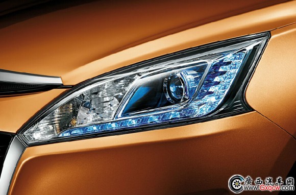 在最吸引人的燈光設(shè)計(jì)部分,納智捷 優(yōu)6 SUV采用大尺寸晶鉆頭燈組,以L型排列的12顆LED燈,以納智捷企業(yè)標(biāo)準(zhǔn)色藍(lán)色為顏色,不僅創(chuàng)造出精雕細(xì)琢的鉆石反射效果,也著重強(qiáng)調(diào)了自己的品牌歸屬。源于航太動(dòng)力學(xué)的LED尾燈,以不規(guī)則的五邊形設(shè)計(jì),車燈范圍橫跨車尾側(cè)面,讓尾部視覺(jué)靈動(dòng)大器,車燈的紅寶石排列效果以紅襯底再輔以鍍鉻線條,科技感十足。此外,盾形鍍鉻水箱護(hù)罩、類碳纖維前氣霸、17寸雙彩炫風(fēng)鋁圈、類碳纖維后下?lián)醢、空氣擾流尾翼等配置還賦予了納智捷 優(yōu)6 SUV蓄勢(shì)待發(fā)的強(qiáng)烈運(yùn)動(dòng)感。