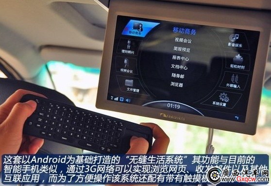 為了強(qiáng)調(diào)“后排商旅”的產(chǎn)品特性,納智捷 大7 MPV為后排的商務(wù)人士提供了基于Android系統(tǒng)打造的“無縫智慧系統(tǒng)”,通過內(nèi)置雙SIM卡以及多款定制軟件,使得移動(dòng)上網(wǎng)、移動(dòng)辦公、Office文件瀏覽等工作變得更加便捷。內(nèi)置的3G網(wǎng)卡不僅提供了車載電話功能,同時(shí)還可以隨時(shí)連接無線網(wǎng)絡(luò),從而啟動(dòng)“隨身郵”功能,隨時(shí)隨地收發(fā)郵件,輕松實(shí)現(xiàn)辦公室與車內(nèi)的無縫化銜接,為后排的商務(wù)人士提供了與辦公室無異的商務(wù)環(huán)境,帶給他們獨(dú)一無二的全新移動(dòng)辦公新模式。