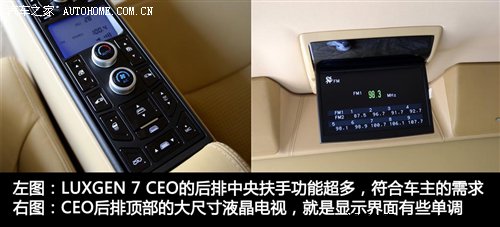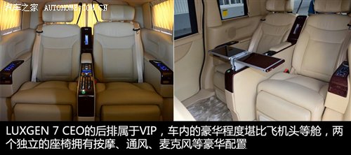 CEO的后排僅有兩個(gè)功能非常豐富,堪比飛機(jī)頭等艙的沙發(fā)座椅。在座椅的周圍分別圍繞著按摩座椅控制、后排空調(diào)控制。后排娛樂系統(tǒng)控制等設(shè)備的控制按鈕。