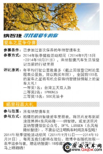 此外,活動(dòng)期間,納智捷還將開設(shè)“愛車之星爭(zhēng)奪賽“、“曬里程贏大獎(jiǎng)”等有獎(jiǎng)互動(dòng),臺(tái)灣雙人游、時(shí)尚iPhone6、豪華車模禮品、500元油卡等,豐厚獎(jiǎng)品樂不停!
