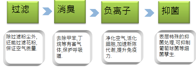全新納5負(fù)離子森林氧吧具有四層過濾及殺菌的功效。**層粉塵過濾,采用的粉塵空調(diào)濾芯能有效過濾進(jìn)入汽車?yán)錃庀到y(tǒng)的粉塵和細(xì)菌,保證空氣質(zhì)量;第二層活性炭除臭采用的高效能蜂窩式活性炭濾芯可消除車內(nèi)甲苯、丁烷等有害氣體,可以有效保護(hù)使用者的呼吸道;第三層負(fù)離子空氣凈化,活化細(xì)胞,采用負(fù)離子空調(diào)濾芯,通過風(fēng)吹摩擦方式產(chǎn)生靜電,并將周圍通過的水氣離子化,從而產(chǎn)生負(fù)離子,達(dá)到凈化車內(nèi)空氣的目的,同時(shí)可以加速新陳代謝,增強(qiáng)身體抵抗力,提升車內(nèi)每一位成員的身體免疫力;第四層抑菌,表層特殊的抑菌處理可抑制葡萄球菌等細(xì)菌的滋生,經(jīng)測(cè)試全新納5的車載負(fù)離子氧吧對(duì)葡萄球菌、大腸桿菌、肺炎球菌的抑制效果超過70%,高效的抑菌效果將隨車人員的細(xì)菌感染幾率降到最低。