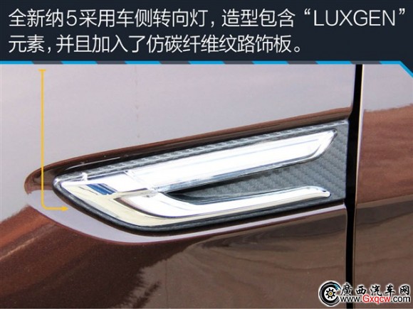 除了日行燈,納5的轉(zhuǎn)向燈組也使用了LED的光源,而遠(yuǎn)/近光燈則是運用了魚眼式的氙氣大燈+透鏡的結(jié)構(gòu),簡化了燈罩內(nèi)的部件,也讓整個燈組顯得炯炯有神。