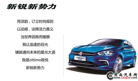 2014年3月7日,廣汽菲亞特旗下第二款國產(chǎn)車型——意式型動掀背轎車Ottimo致悅,將于上海世博會展中心盛大上市。同時,由廣汽菲亞特與華誼時尚聯(lián)袂舉辦的旨在挖掘未來風尚新星的“新銳新偶像Fashion New Icon”選秀活動亦將炫目啟動。屆時,備受關注的Ottimo致悅將與超人氣“巨肺小天后”G.E.M.鄧紫棋一起,為到場嘉賓呈現(xiàn)一場美輪美奐的視聽盛宴。