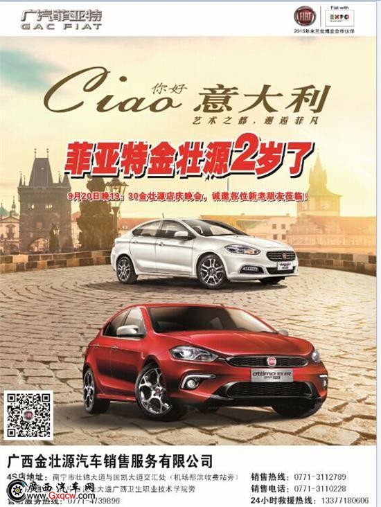廣西金壯源廣汽菲亞特20日二周年店慶五重禮遇: