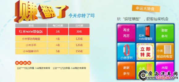 為增加消費(fèi)者與帥客和NV200的親密互動(dòng),鄭州日產(chǎn)特別為廣大消費(fèi)者設(shè)置“再試一次”按鈕,只要再次參與答題,答對(duì)兩道及以上數(shù)量者仍可進(jìn)入抽獎(jiǎng)環(huán)節(jié)。此次活動(dòng)獎(jiǎng)品設(shè)置非常豐富,有小米紅米note增強(qiáng)版手機(jī)、小米充電寶、小米手環(huán)、小米隨身WIFI(如下圖所示),保證讓你出行聯(lián)絡(luò)暢通無阻;顒(dòng)期間,豪禮天天送,就等你來拿。