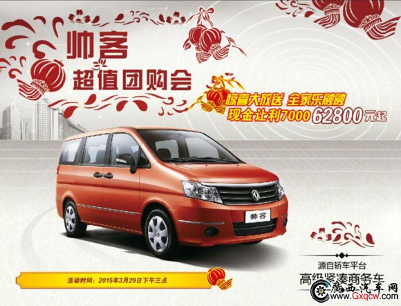 3月29日,鄭州日產(chǎn)廣西鑫瑞騏4S店將隆重舉行“帥客超值團(tuán)購會(huì)”,現(xiàn)場優(yōu)惠7000元,全城*低價(jià)僅限當(dāng)天,還有更多團(tuán)購驚喜不容您錯(cuò)過!