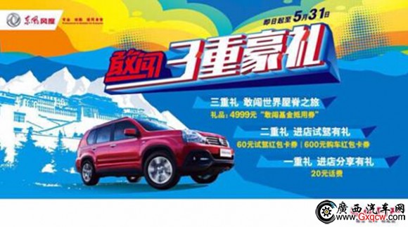 【三重禮,敢闖世界屋脊之旅】想體驗世界屋脊帶給心靈的輕松與純凈,可在5月31日之前,前往鄭州日產(chǎn)4S店交付499元訂金,同時繳納一萬元購車定金,簽署定車合同,于6月30日之前完成購車,便有機(jī)會獲得價值4999元的“敢闖世界屋脊之旅”抵用券,名額僅限50人,機(jī)不可失,先到先得。