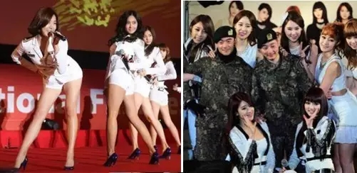 “宇宙中心”韓國(guó)有著得天獨(dú)厚的偶像女團(tuán)資源,經(jīng)常不定期的發(fā)動(dòng)知名女子組合到軍隊(duì)慰勞的阿兵哥,什么少女時(shí)代啊、EXID啊……基本上你能叫得出名兒的都在韓國(guó)軍營(yíng)里表演過(guò),嘖嘖……來(lái)感受下,姑娘們的性感好身材一登場(chǎng)就足矣讓阿兵哥們理智全失陷入瘋狂。