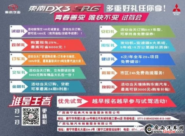 想親自試駕體驗(yàn)東南DX3 SRG的高實(shí)力嗎?想享受當(dāng)日限時廠家冰點(diǎn)購車價嗎?想獲得2噸免費(fèi)汽油嗎?試”不宜遲,趕緊報(bào)名吧,與您不見不散!
