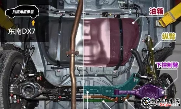 另外,東南DX7采用了類似“一”字形的副車架,除了具備更多的空間優(yōu)勢以外,還通過裝備防傾桿與加強(qiáng)桿,增強(qiáng)在側(cè)向的支撐力和剛性,在調(diào)校方面都具有一定的優(yōu)勢;谡囬_發(fā),東南DX7將減振器近乎垂直的布置在了輪拱側(cè),相比之下,傾斜布置在車底的減振機(jī)構(gòu)有助于乘員艙后部空間的打造,而垂直布置的方式則有利于操控性能的調(diào)校。
