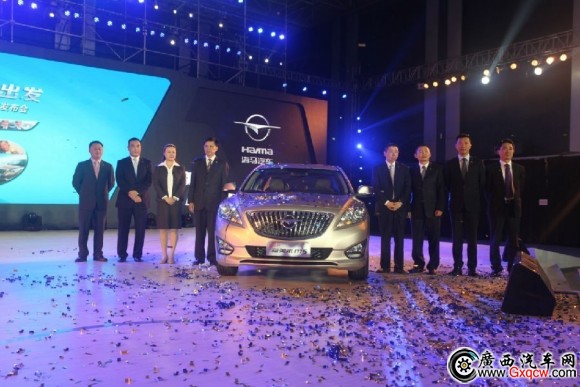 海馬汽車領(lǐng)導(dǎo)與新一代福美來M5合影留念