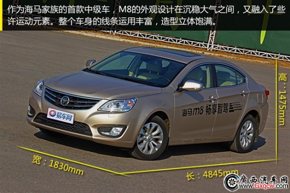 海馬M8的外觀設(shè)計是屬于整體成熟大氣,其中又稍帶有運(yùn)動風(fēng)格的類型。車身線條運(yùn)用的很豐富,很有層次感。扁平的車頭造型加上短小精悍的尾部,再由側(cè)面兩條凸出的腰線相連接,使整個車身富有層次感和立體感。