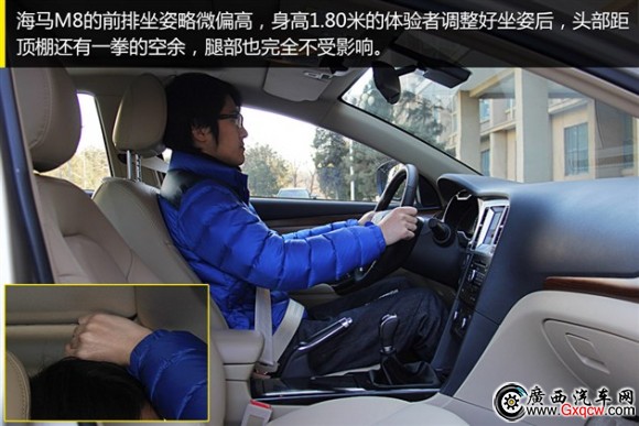駕乘空間和空間整體實(shí)用性是考驗(yàn)一輛中級車的重要標(biāo)準(zhǔn)。海馬M8擁有2800mm的軸距,尺寸本身在同級車中具有一定的優(yōu)勢。實(shí)際表現(xiàn)也很不錯,尤其是后排的腿部空間,身高1.82米的體驗(yàn)者坐在后排,腿部距前座椅靠背尚有將近三拳的距離。**不足是后排頭部空間,由于車尾部造型的關(guān)系,留給頭頂?shù)木嚯x大約只有兩指?梢哉f是為流線的車身外觀做出了犧牲。