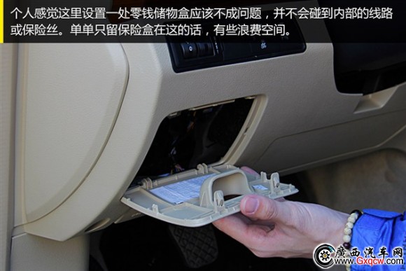 儲物方面,車內(nèi)設(shè)置的儲物格十分豐富,像前排扶手箱和后排扶手都加入了分層結(jié)構(gòu),上面的方格內(nèi)可以存放隨身的零散物品。**令人不解的是駕駛位下方,本以為會有零錢盒的位置,結(jié)果發(fā)現(xiàn)卻是保險盒。觀察了一下,發(fā)現(xiàn)內(nèi)部還是有富余空間的,完全可以在此設(shè)置一處零錢盒。