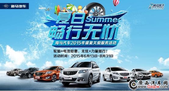 炎熱的夏季,滾燙的馬路和酸雨增加了車輛爆胎事故發(fā)生的幾率,而在此期間電瓶出現(xiàn)故障引發(fā)的電器問(wèn)題甚至自燃的危險(xiǎn)也進(jìn)一步增加。針對(duì)這一特殊時(shí)期,海馬汽車自今年起推出“盛夏關(guān)愛(ài)”夏季服務(wù)活動(dòng),讓車輛在每年嚴(yán)酷夏日里得到無(wú)微不至的呵護(hù)。