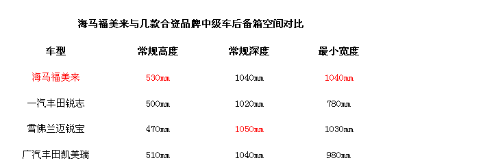 第四代福美來自設(shè)計之初,就致力于提高單身家庭的生活品質(zhì),它不僅有舒適、寬敞的內(nèi)部乘用空間,還擁有超大的載物空間。雖然定位于緊湊型家用轎車,但是它的載物空間甚至比更高級別的中級車還大。![W`ZG1R5N2J8YLN(GBWF]J[H.png](/upfile/201511/1447549097998709.png)